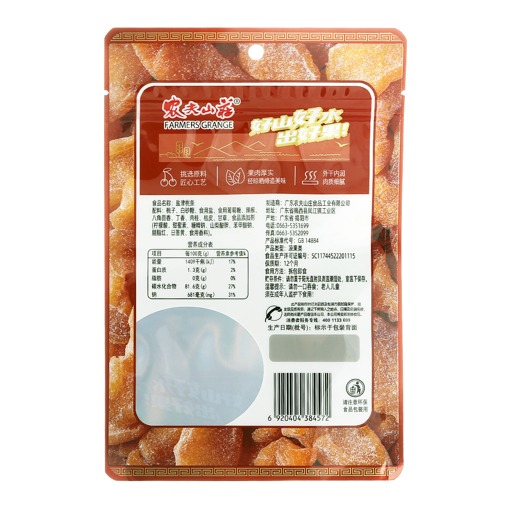 九制盐津桃条108克